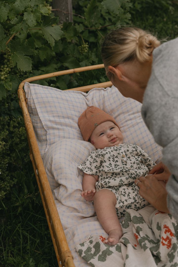 Beanie with fold-up in soft, waffle-knit cotton jersey with signature print. Lovely beanie to easily make matching look for your little ones.