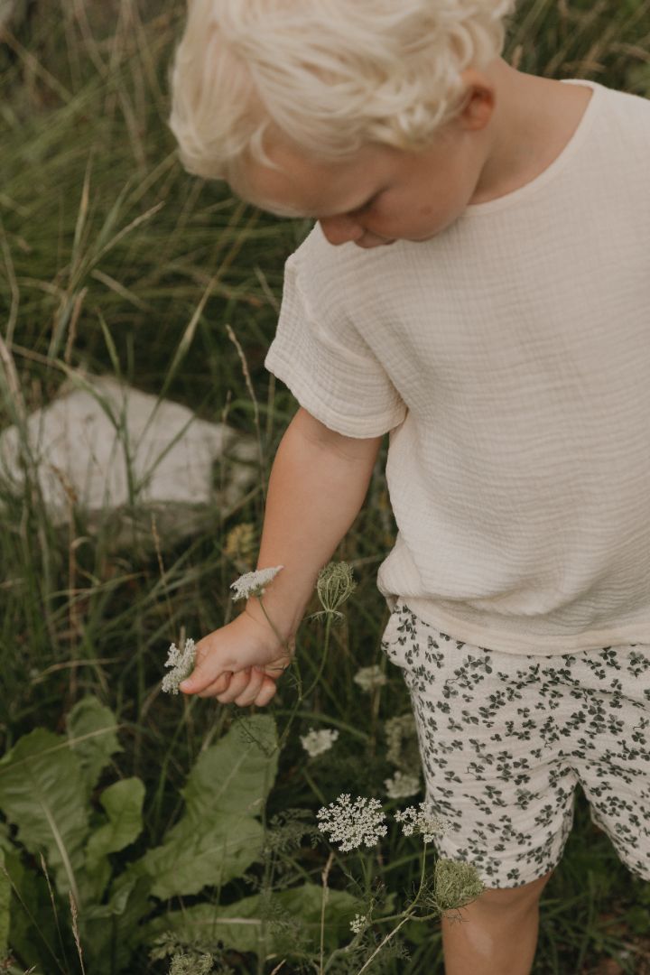 Shorts in soft cotton muslin with discreet side pockets and adjustable covered elastic at the waist for a perfect fit. These unisex shorts are perfect to match with our muslin shirts or blouses.
