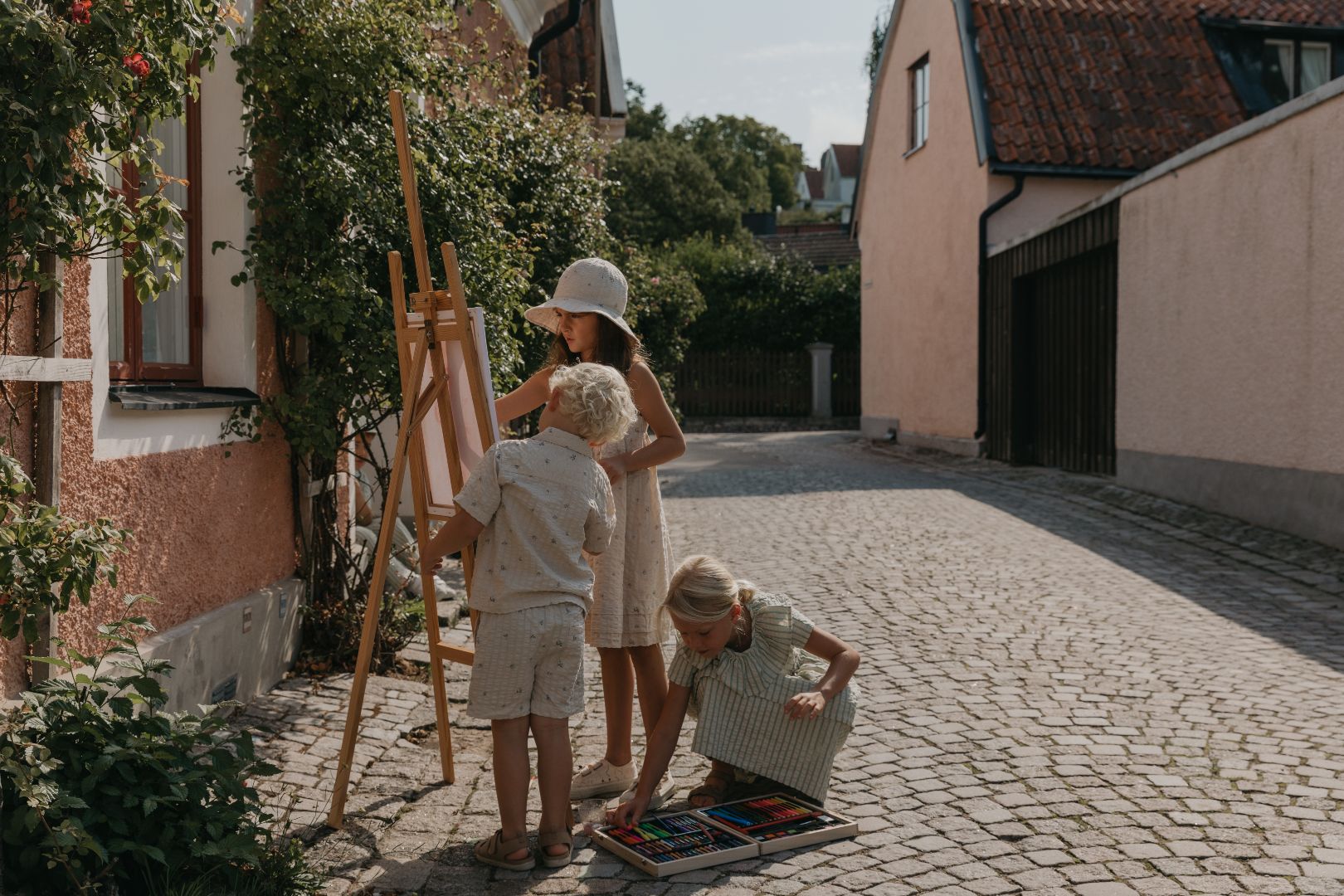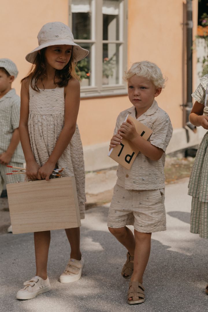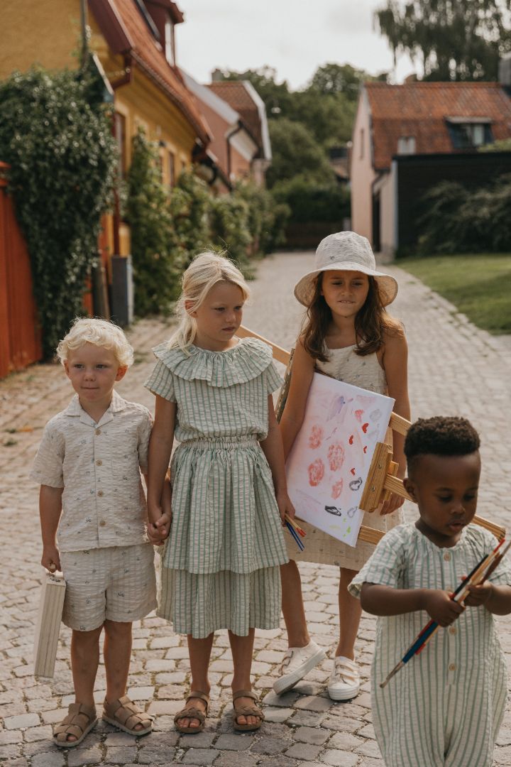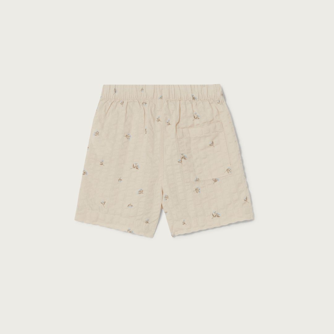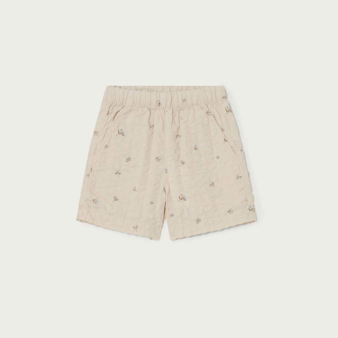 Shorts in a light cotton seersucker quality. The shorts have discreet side pockets and an adjustable covered elastic at the waist for a perfect fit. These unisex shorts are perfect to match with our shirts, tops and blouses!