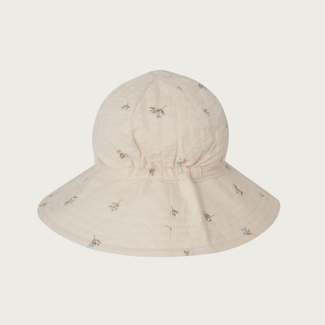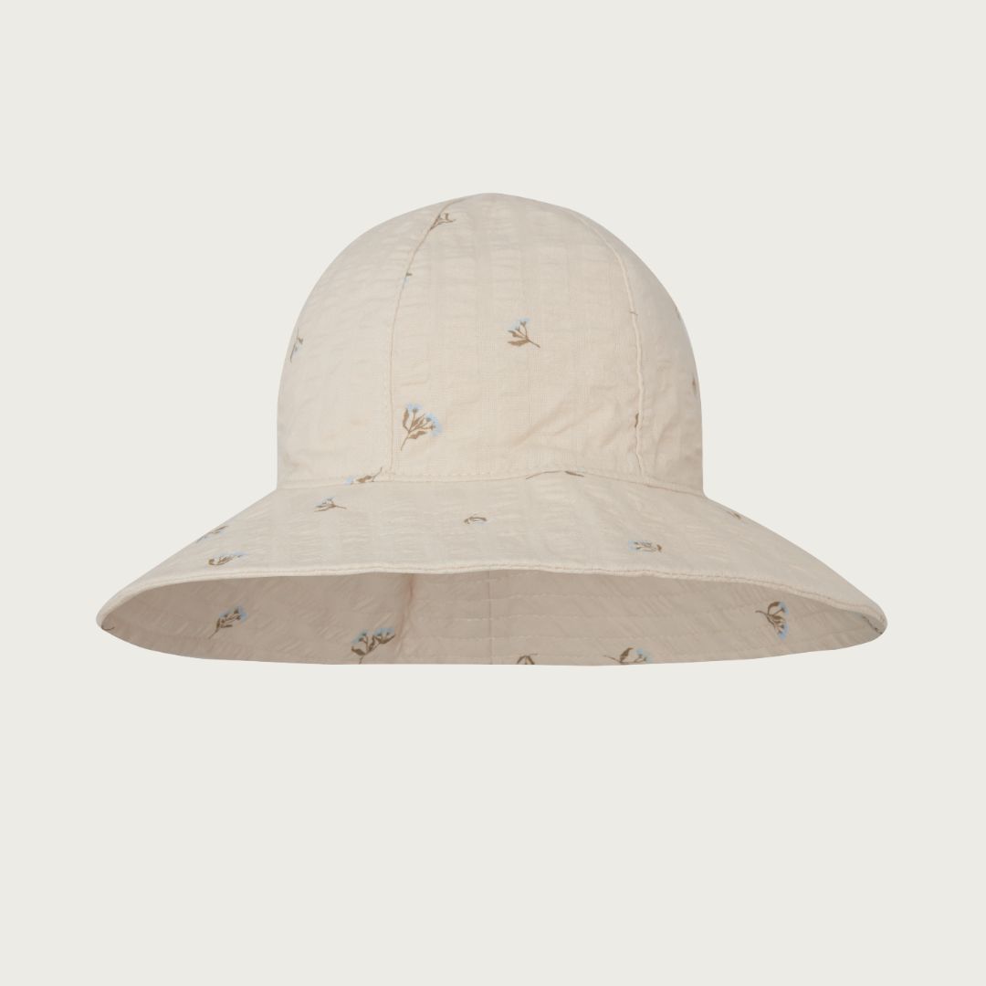 Sun hat in a light cotton seersucker quality. The sun hat has a wide brim and elastic at back to ensure a perfect fit. The smallest sizes have ties under the chin to keep the hat in place. Create the perfect summer outfit by combining with our other seersucker pieces.