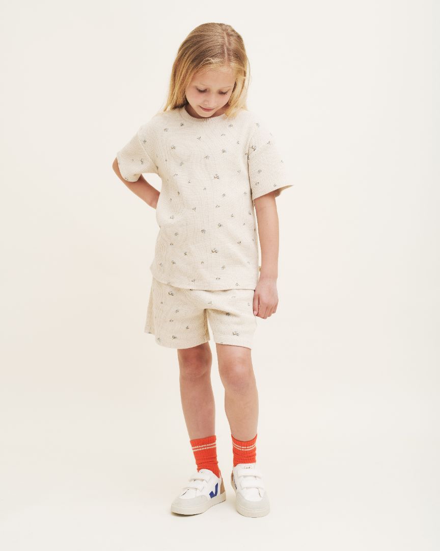 T-shirt in soft, waffle-knit cotton jersey with signature print. The T-shirt has a cuffed neckline and a relaxed fit.