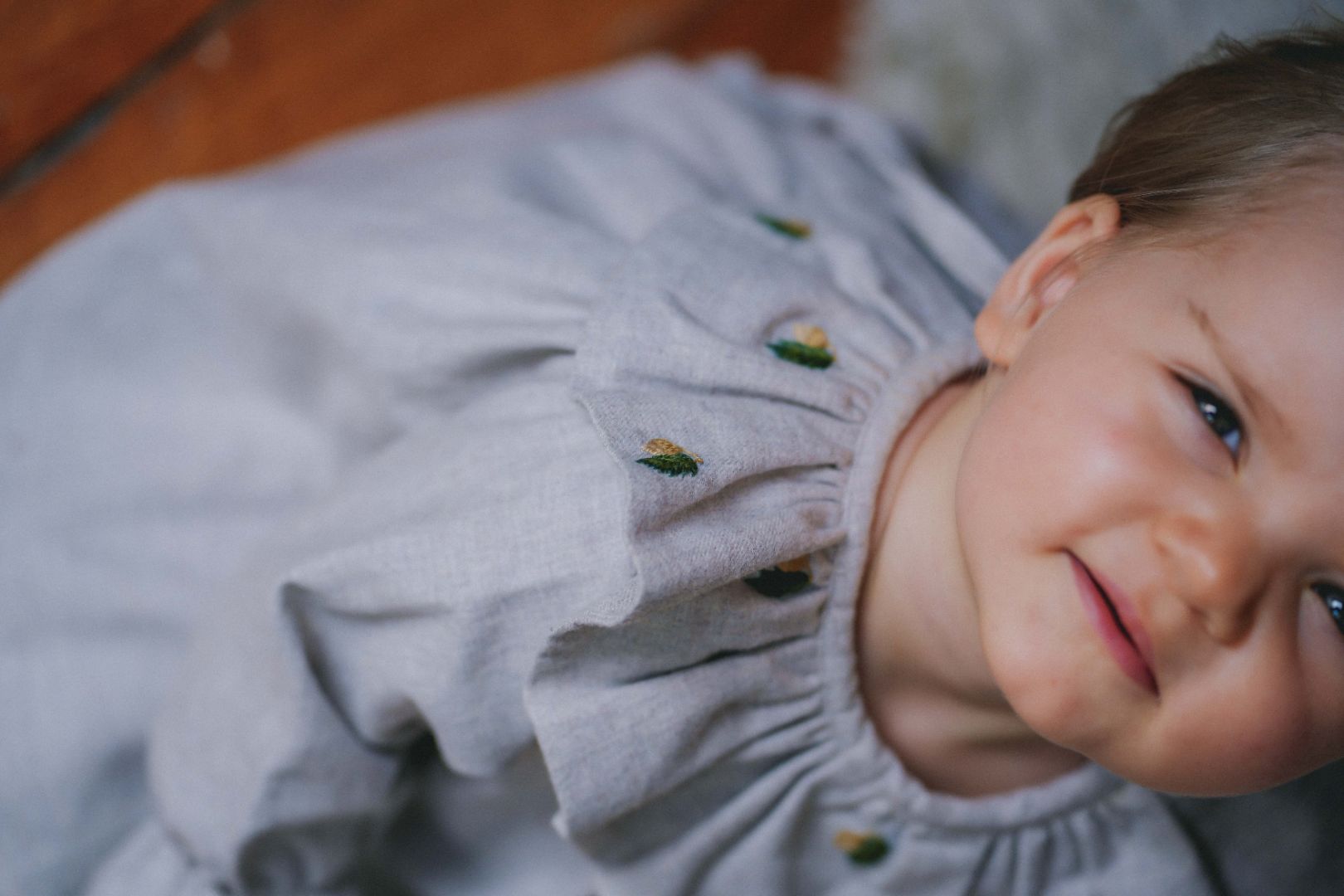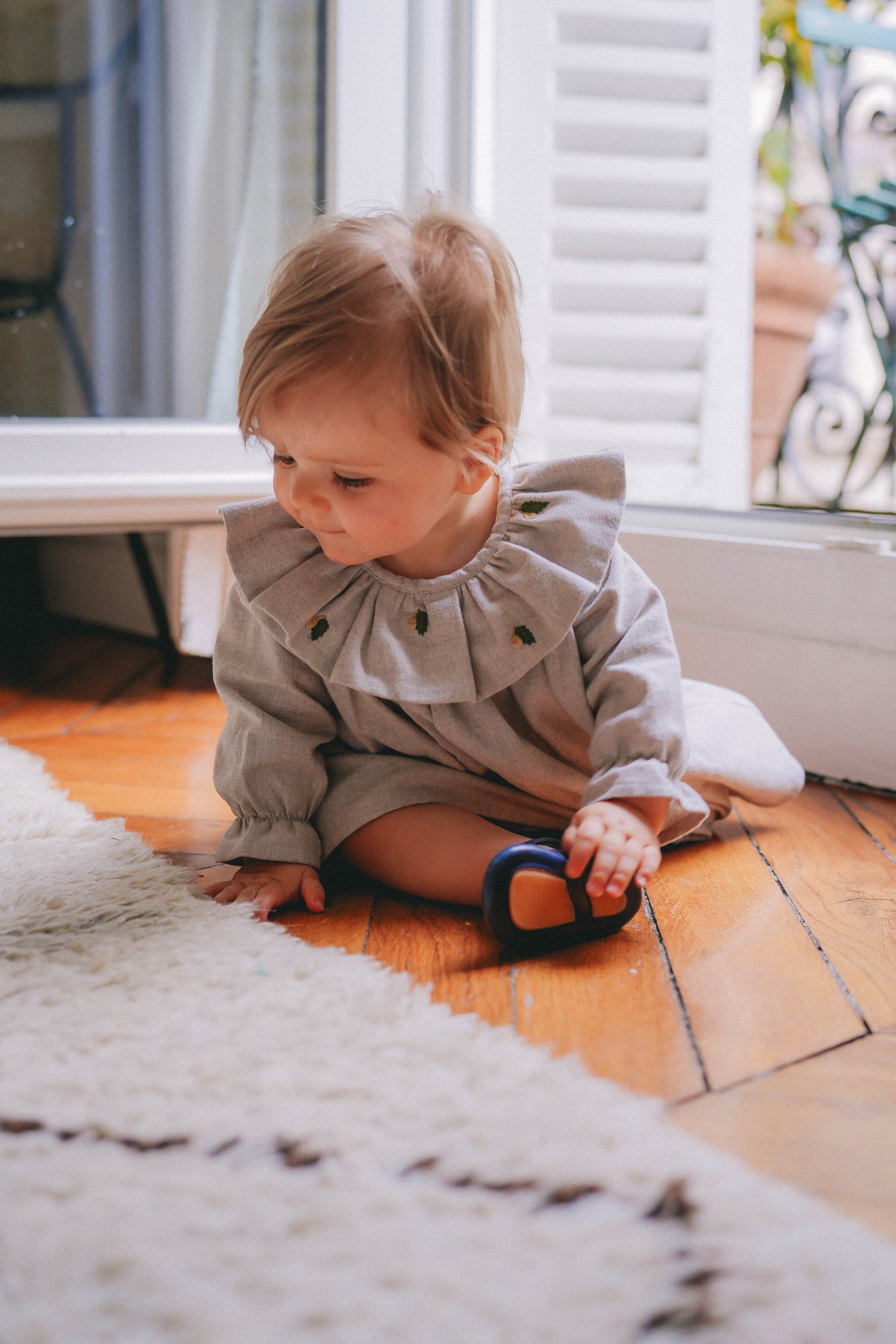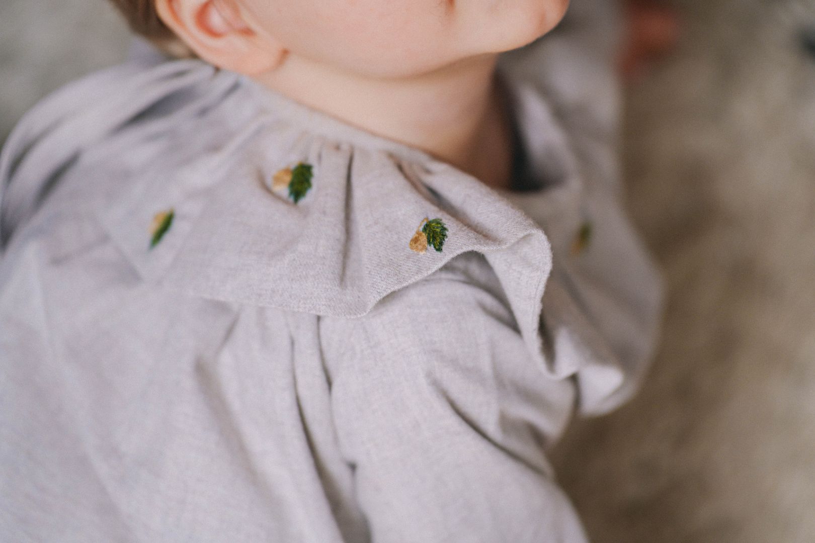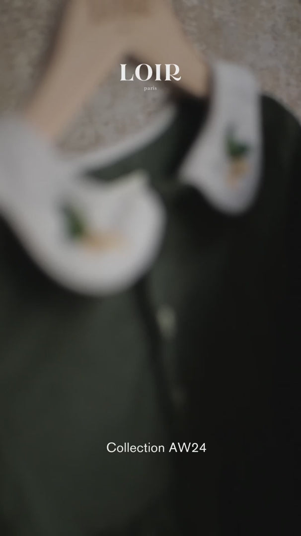 - Hand-embroidered details on the collar