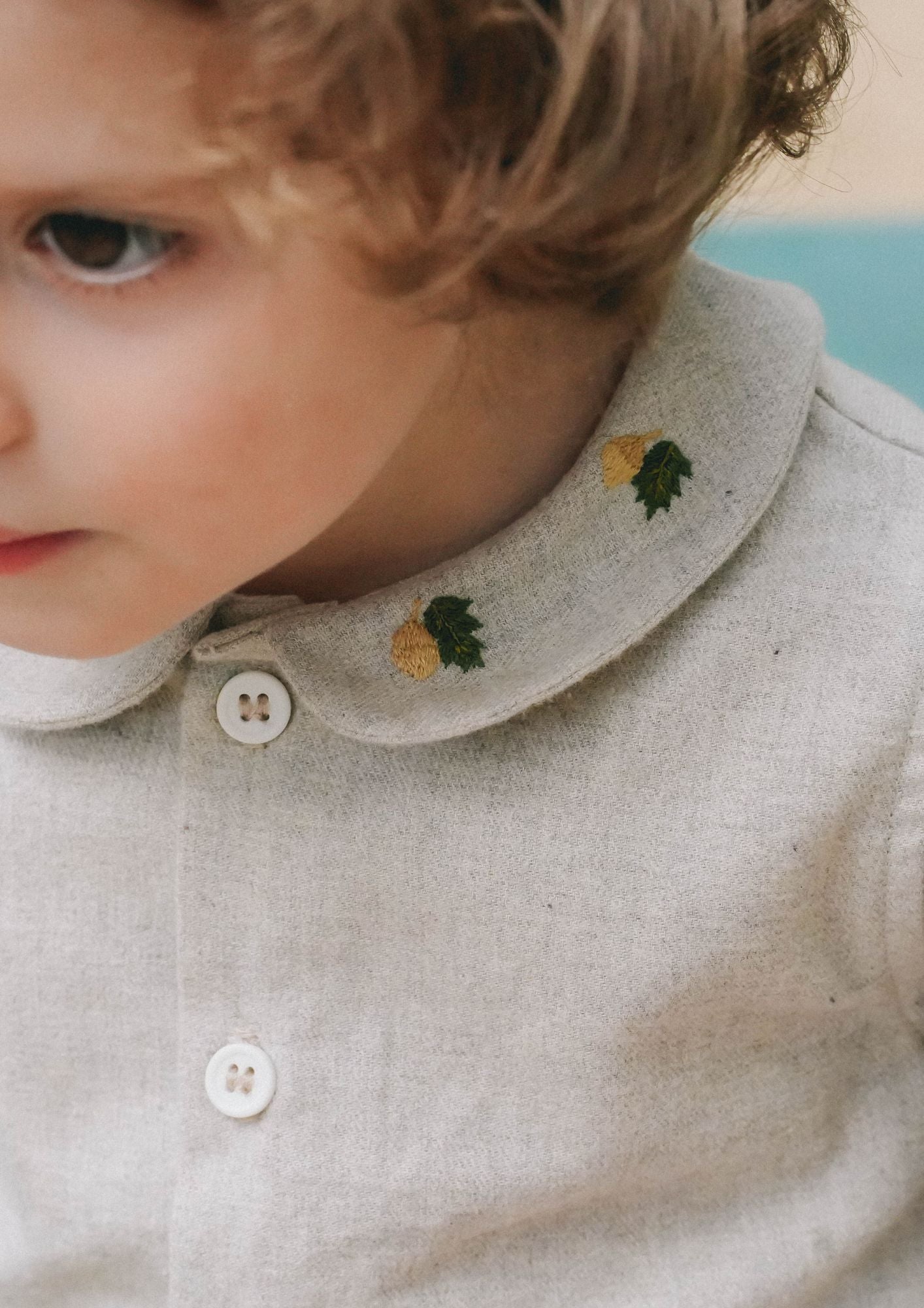 - Rankomis išsiuvinėtos detalės ant apykaklės ir rankogalių